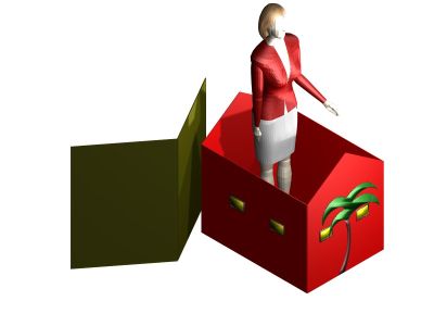 Once the house has been assembled, it can be moved around to show that there is no funny business going on. At the performer’s command, the roof pops off the house and out steps one or two people depending on the performer’s wishes. No trap doors or special stage settings are required for this effect.\
