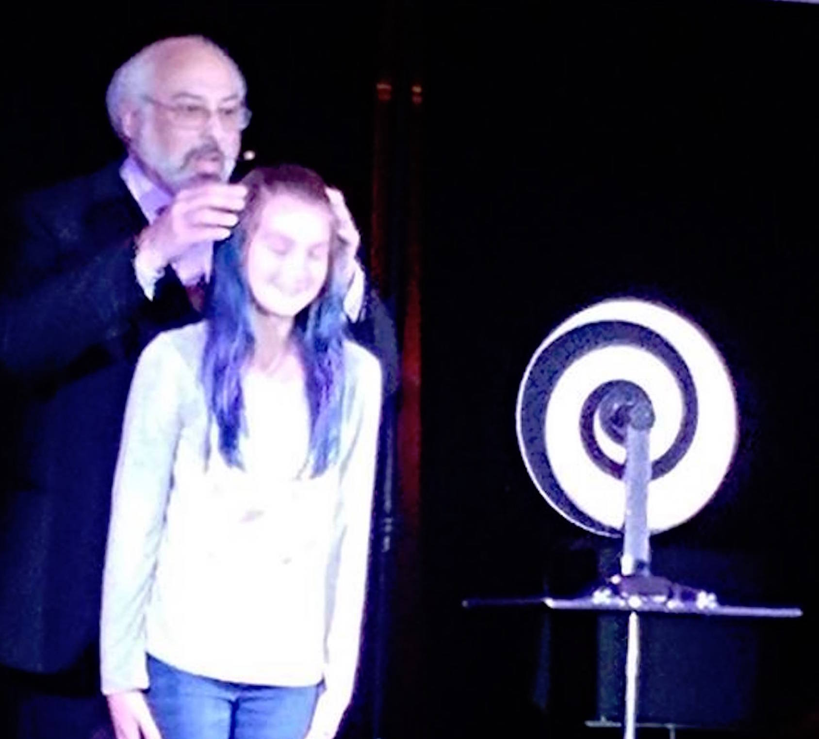 Every audience wants to do it again so this time you have the audience select a partner. Spin the disk the other way and when they look at their partner, THEIR PARTNER’S HEAD BEGINS TO SHRINK! All the spirals are specially drawn and printed for us. The spiral can be seen in large auditoriums or use it at a birthday party. People are amazed and always yell “do it again!” The hardest part of this illusion is trying to keep a straight face as your entire audience stares at you in disbelief with their mouths wide open. You are going to love this! Available in new professional Flexi-plastic.NS INCLUDES THE POWER SOURCE